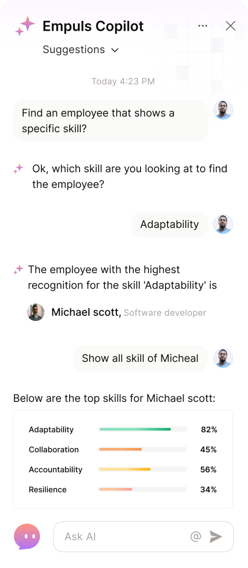 Empuls AI turns recognition data into a powerful driver of performance by uncovering hidden skills, predicting attrition risks, and guiding timely, meaningful appreciation with smart automation.