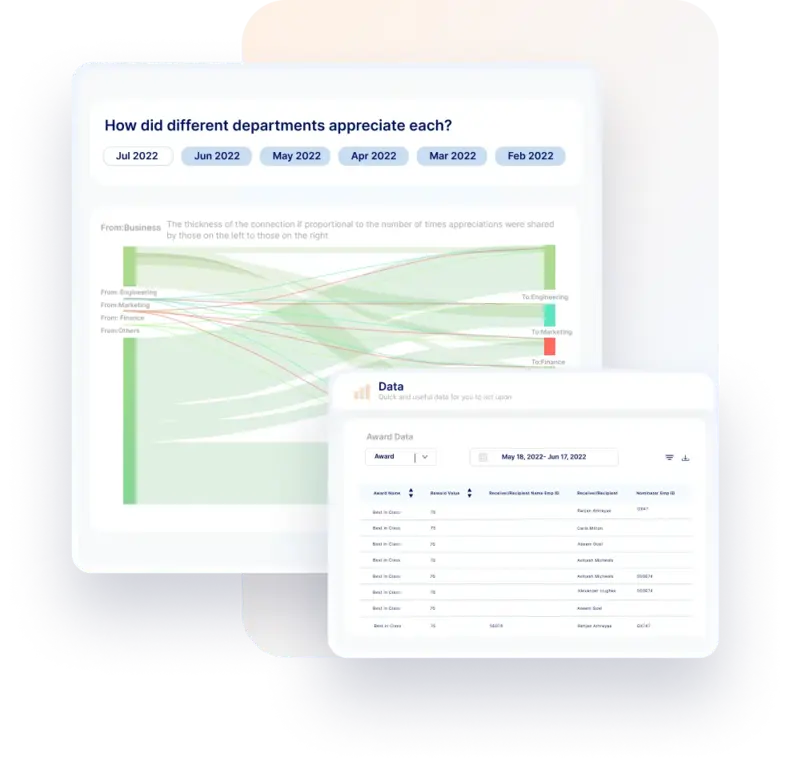 Analyze recognition trends by teams, locations, and departments, allowing for strategic insights that enhance the effectiveness of your peer recognition program.