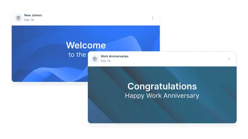 Customize cards for posts on Birthdays, Service Anniversaries, Welcoming New Joinees, and Leaderboard Winners