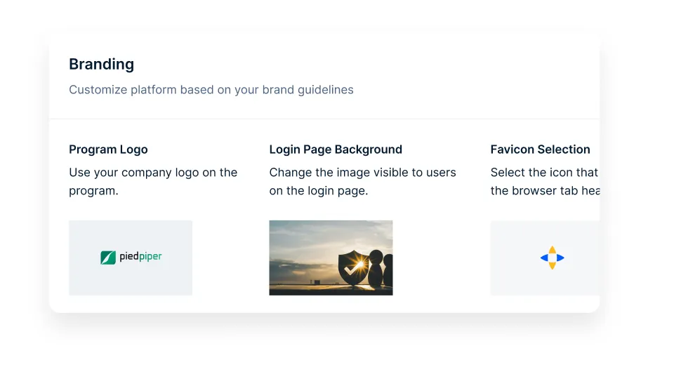 Showcase your company’s branding to make the platform truly yours with options for adding the Program Logo, Login Page Background, Favicon, and Bot Avatar & Profile.