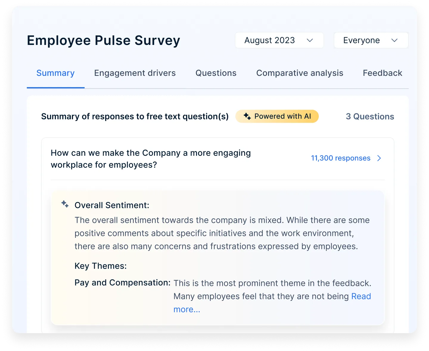 Analyze workforce sentiment with AI-powered sentiment analysis of open-ended feedback.