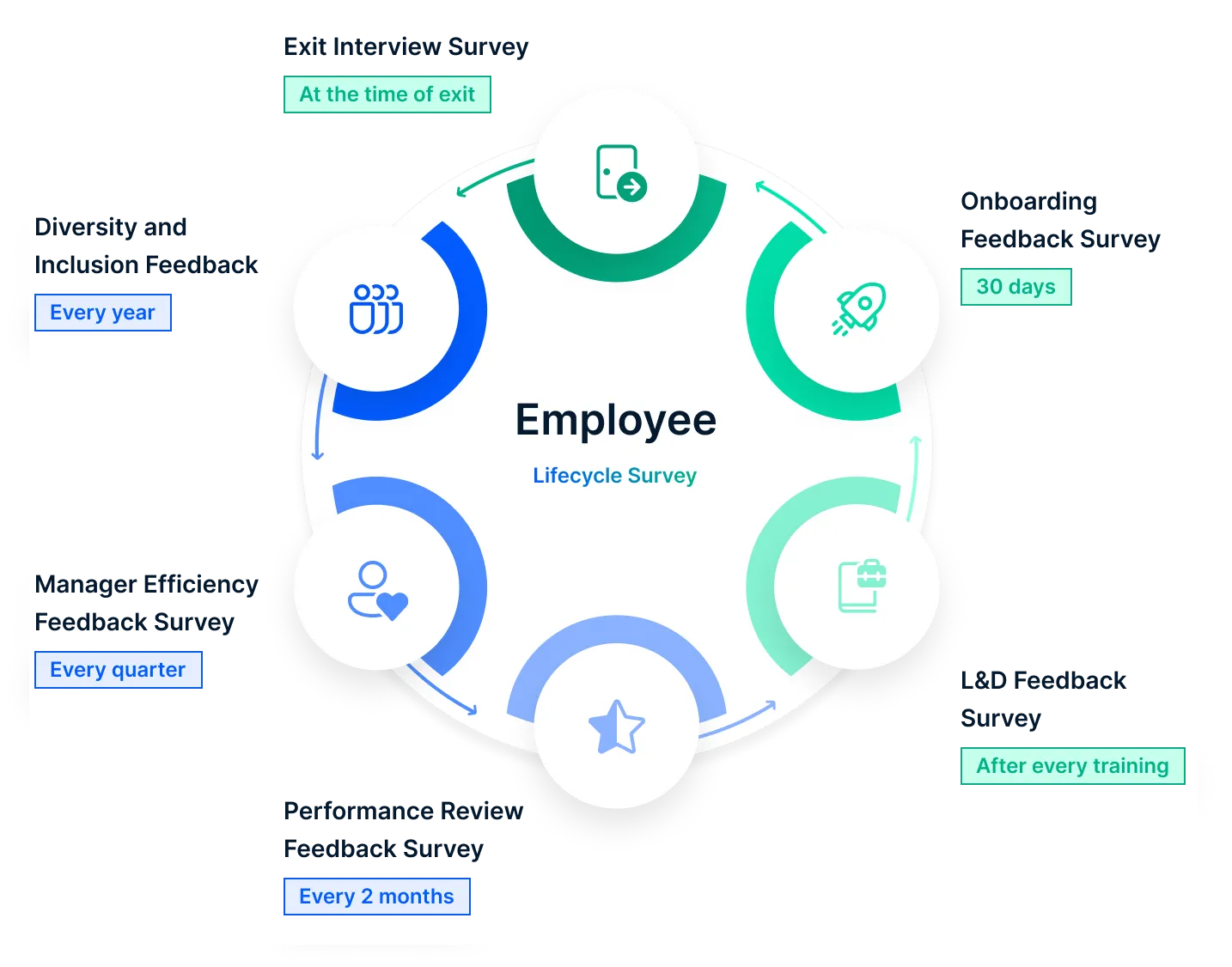 Schedule surveys to be sent at regular intervals for every stage in the employee lifecycle.