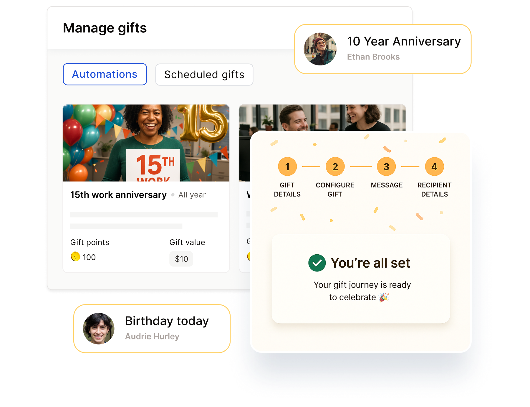 Automate gift delivery for milestones, holidays, and special events.