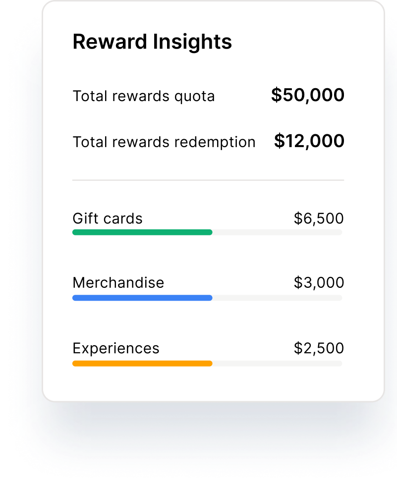 Easily manage award budgets, set custom approval rules, and automate workflows across departments and geographies. Stay ahead with proactive notifications and detect anomalies with reward abuse reports.