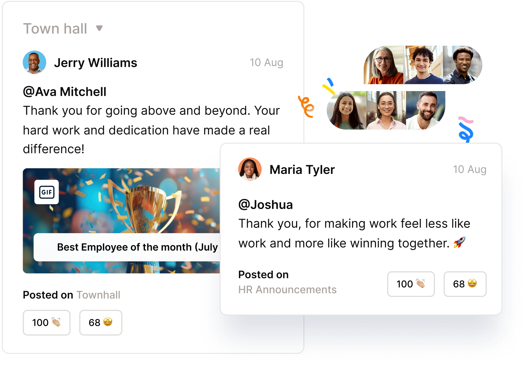 Empower employees to appreciate one another in the moment and amplify achievements with public celebrations. Celebrate on the Wall of Fame and social feeds with gifs, images, and badges.