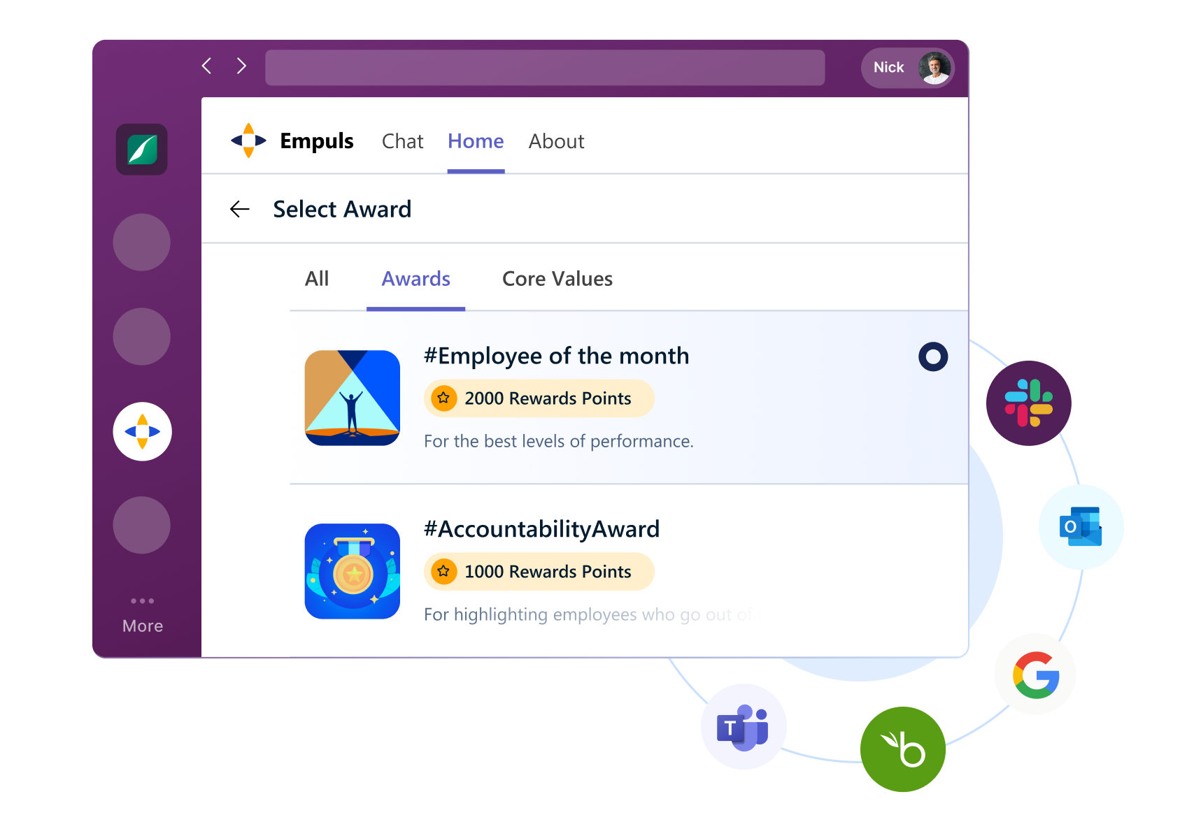 Empuls works seamlessly inside Slack, Microsoft Teams, Outlook, and integrates with your HRMS, intranet, and performance systems. Whether on desktop, mobile, or kiosk, employees can give and receive recognition wherever they work.