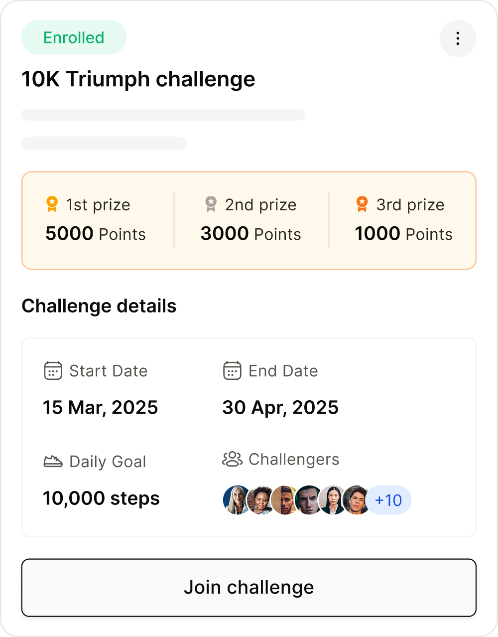 Monitor progress effortlessly as employees progress towards completing the challenge. Access challenges and track progress from with our mobile app.