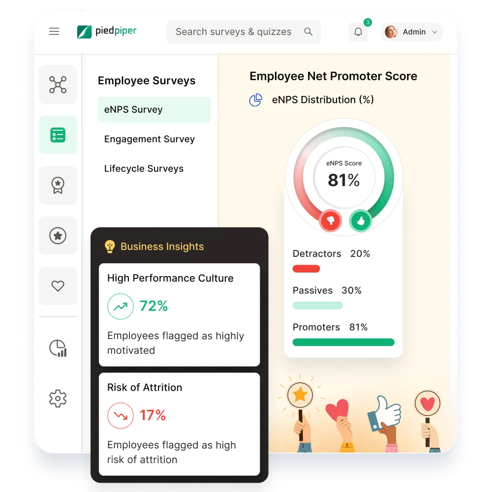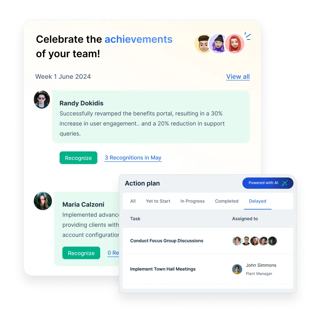 Run surveys seamlessly at every touchpoint in the employee lifecycle, from onboarding to exit, to gather valuable feedback and insights. Automate survey distribution and boost participation with AI-driven reminders and personalization, ensuring higher response rates. Gain deeper insights by benchmarking results against industry standards.