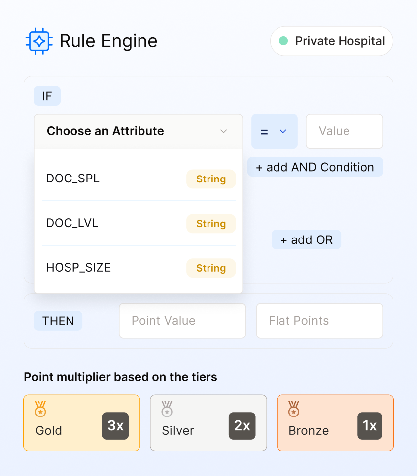Configure complex incentive rules based on therapeutic areas, territories, products, and stakeholder tiers. Support for compliance-aware reward calculations and Sunshine Act reporting requirements.