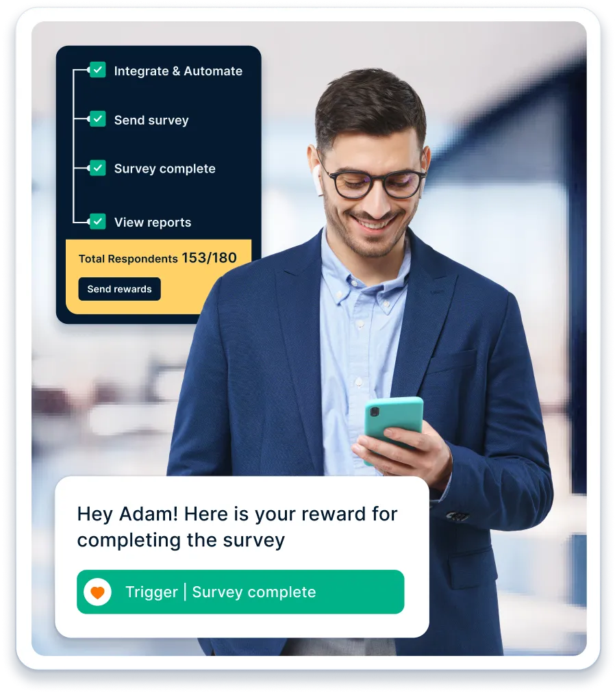 Xoxoday seamlessly integrates with popular survey platforms such as Qualtrics, Typeform, SurveyMonkey, SurveySparrow, Zoho Survey, and Google Form. Set up automated workflows to streamline the reward distribution process, saving you time and effort.