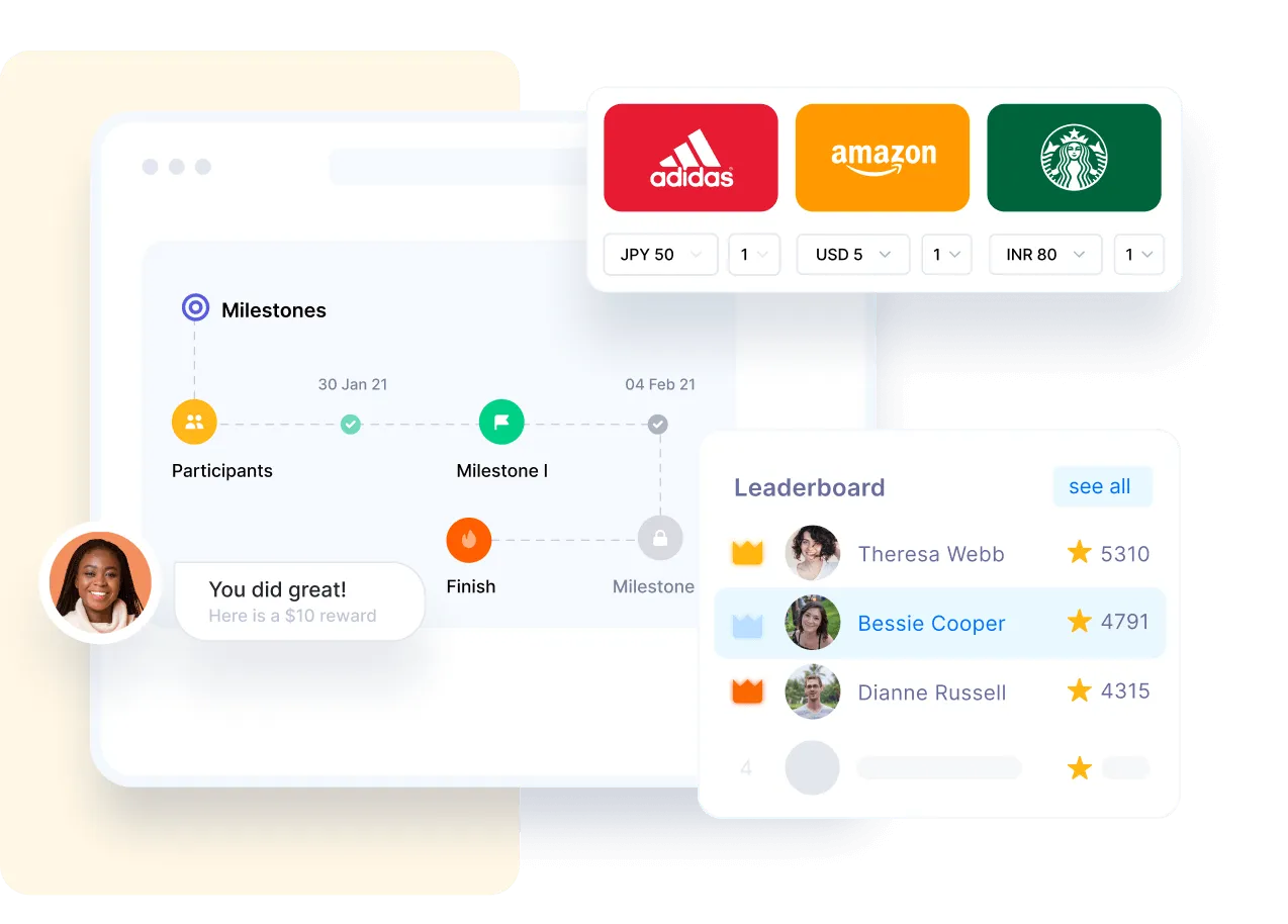 Motivate learners to achieve their goals by incentivizing participation and performance for students, employees, sales teams, SDRs, and customers with lms rewards and incentives. Our platform offers enticing incentives to boost learner engagement and drive LMS adoption, ensuring your business objectives are met quicker and with greater success.
