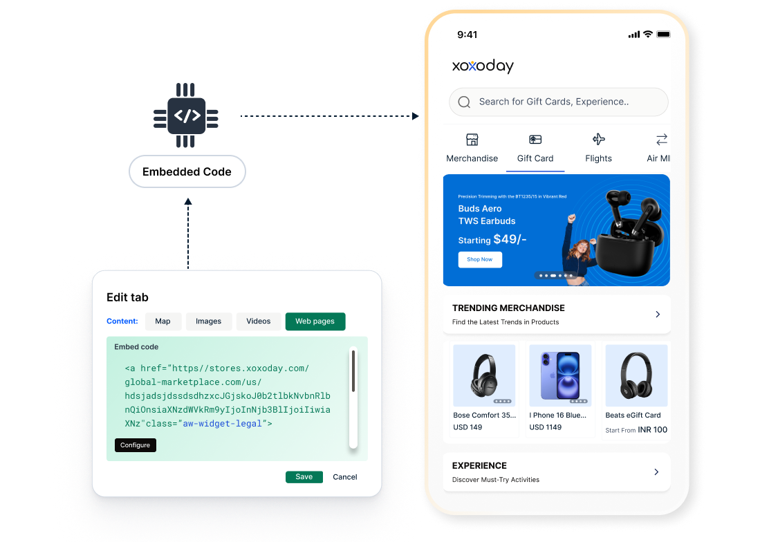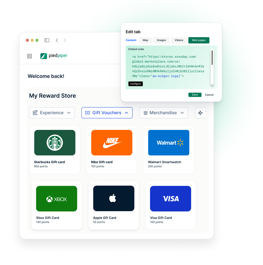 Integrate the rewards marketplace with your platform in minutes using embedded iframe