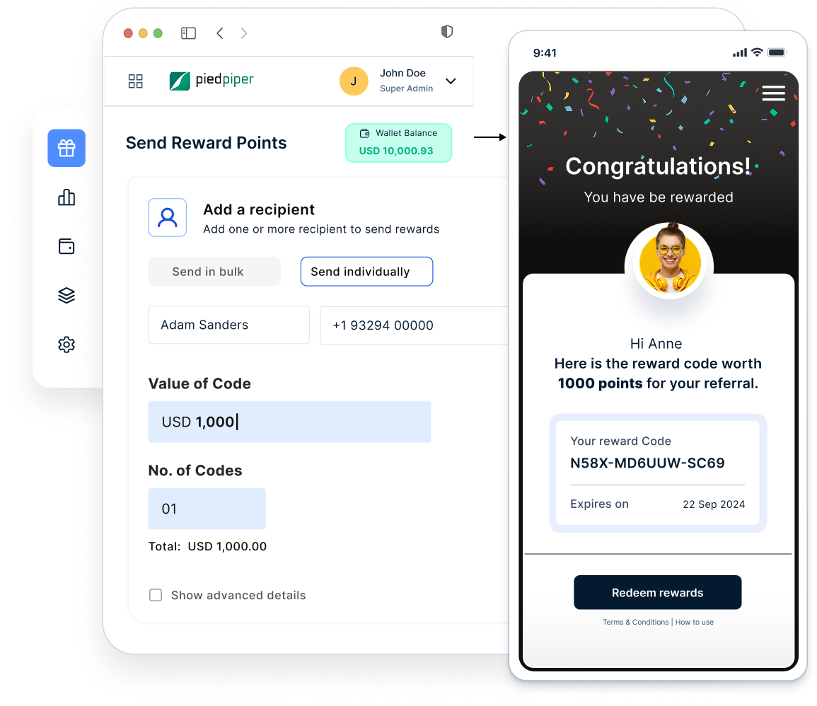 Allow recipients to redeem points all at once or in parts, giving them the freedom to choose when and how to use their rewards.